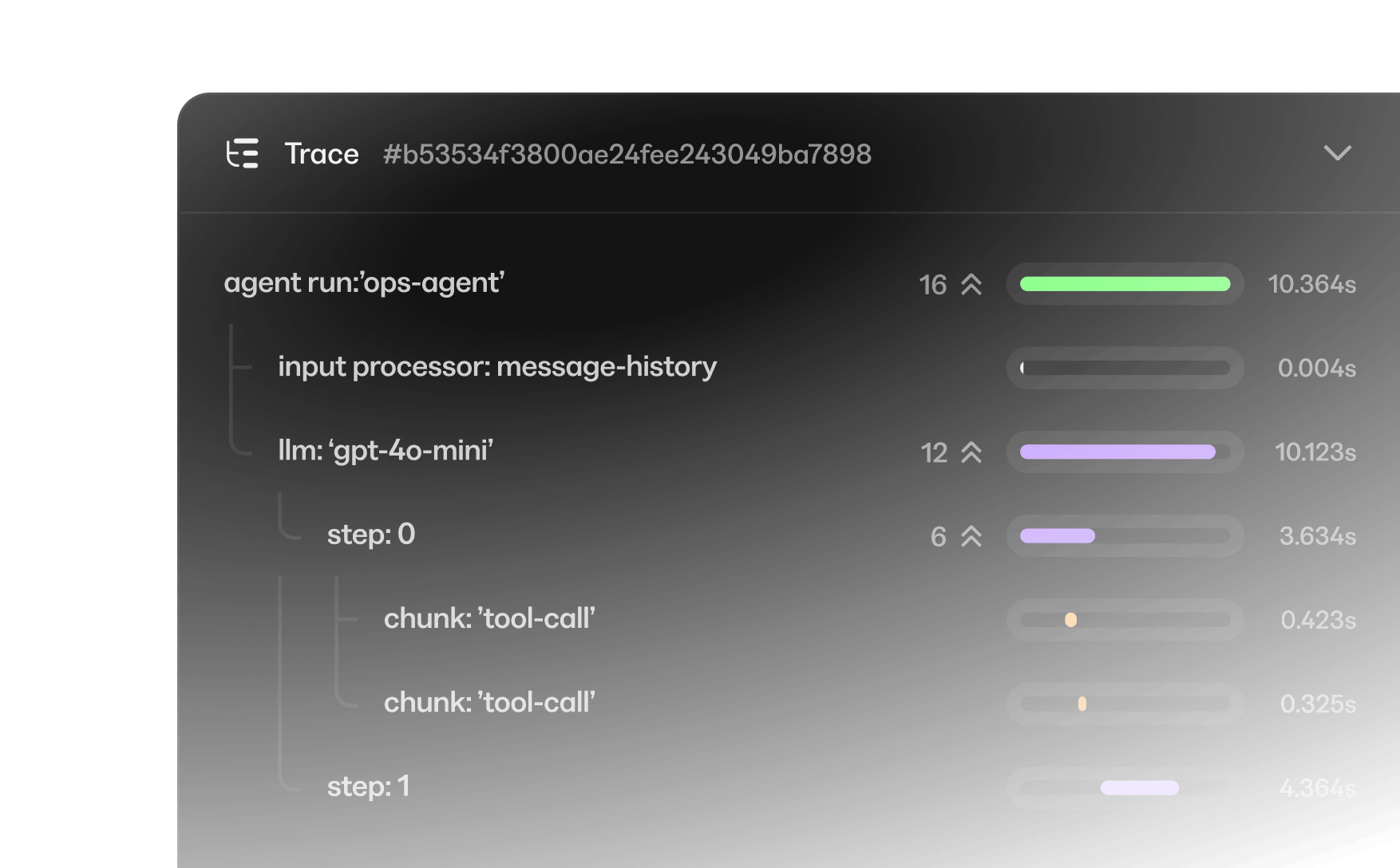 Trace Every StepFollow execution traces to see exactly where an agent stalled or made the wrong call. Record every step with timing, inputs, and outputs.