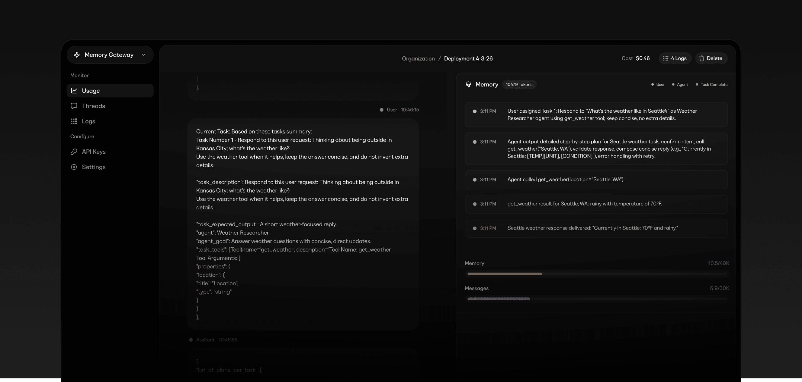 Compress chat history into compact memories that help agents remember what matters. Lower token usage and latency without losing important context.