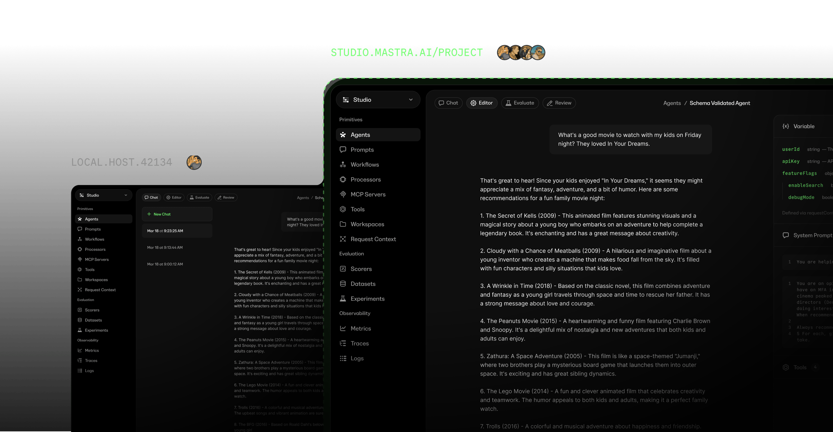 Start Building, Then Invite Your TeamRun Studio on localhost. When ready, share it behind a URL — your team gets the same workspace.